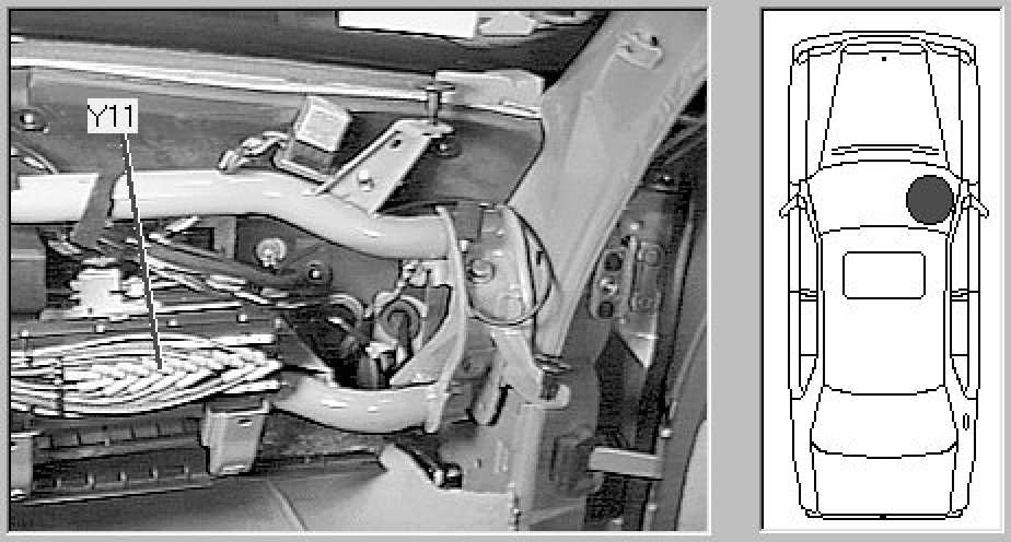 Passenger compartment, behind underdash panel in passenger's footwell.