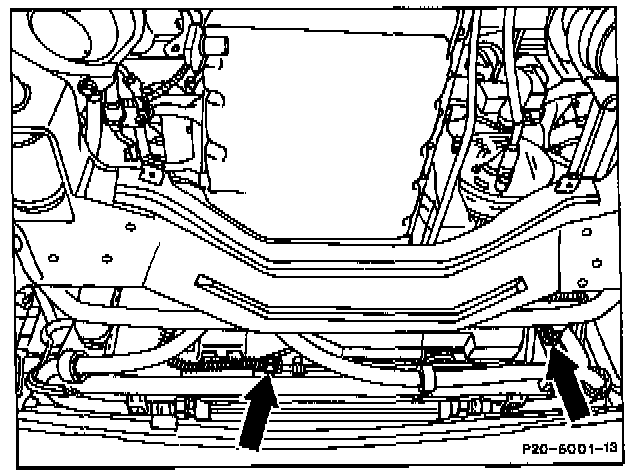 - Unbolt automatic transmission oil lines (arrows) at bottom of radiator.
