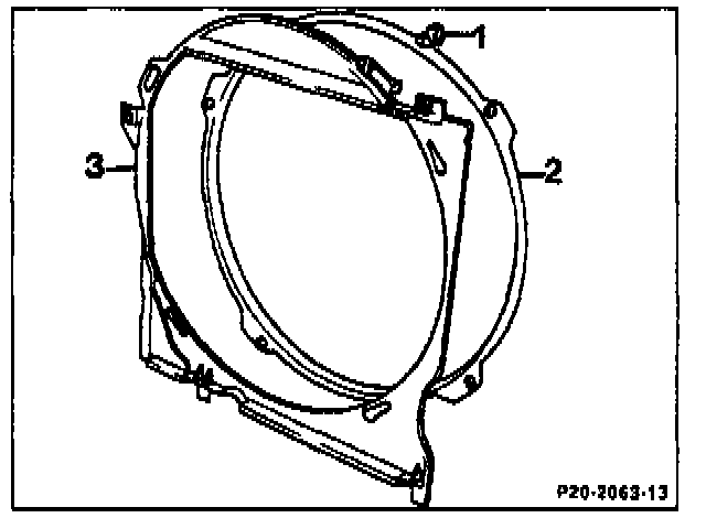 - Remove fan cover ring (2) by withdrawing locking pin (1) and turning ring to the left.