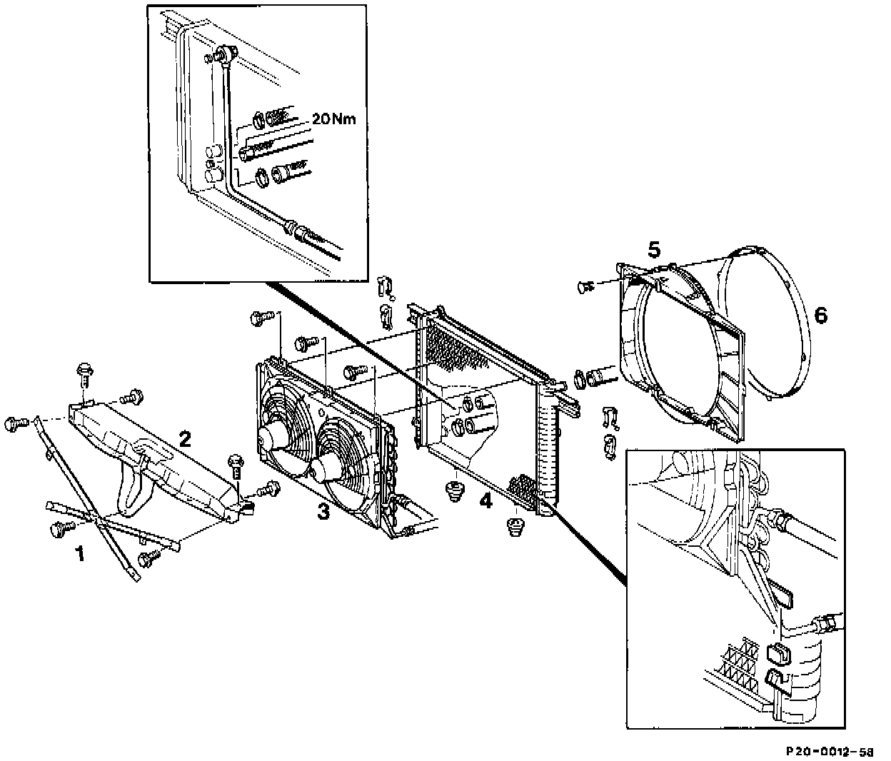 - Detach coolant hoses from the radiator and from the coolant pump.