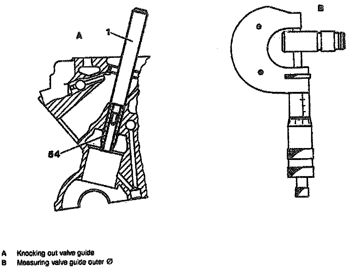 1. Knock out valve guide (54) with drift (1) from the combustion chamber side.