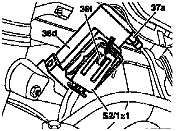 6. Press in locking catch (36f) of connector (S21x1) and pull slide towards the lock cylinder.