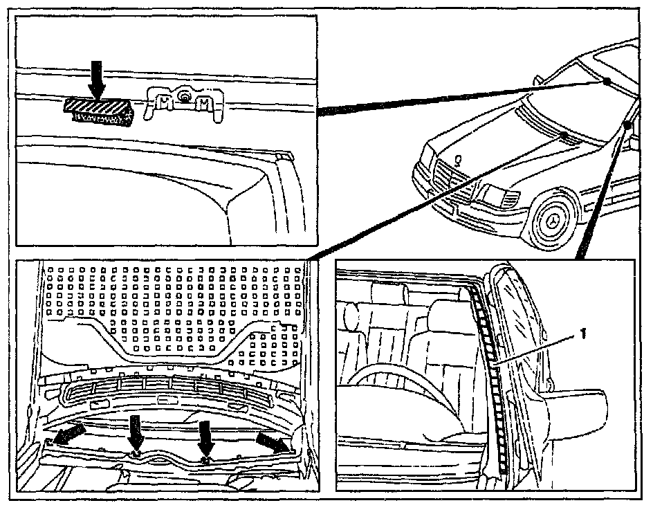 3 Replace tricotstrip (1) on A-pillar if damaged.