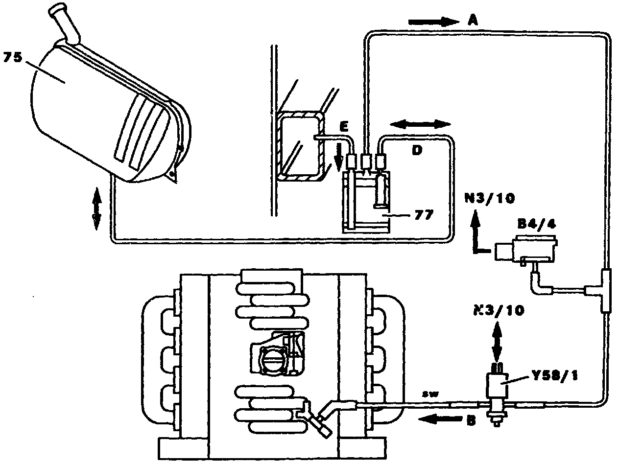 If all the conditions are met, the ME-SFI control module detects the pressure in the pipe from the activated charcoal filter to the purge control valves from the purge monitoring pressure sensor (B4/4).