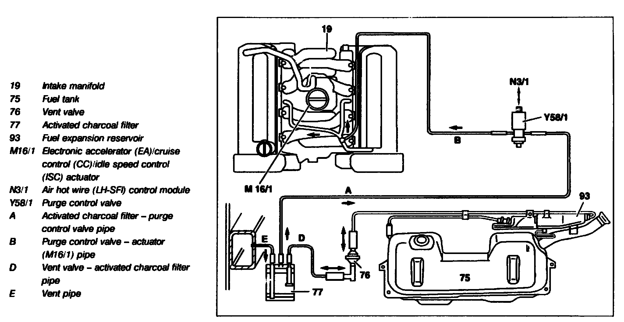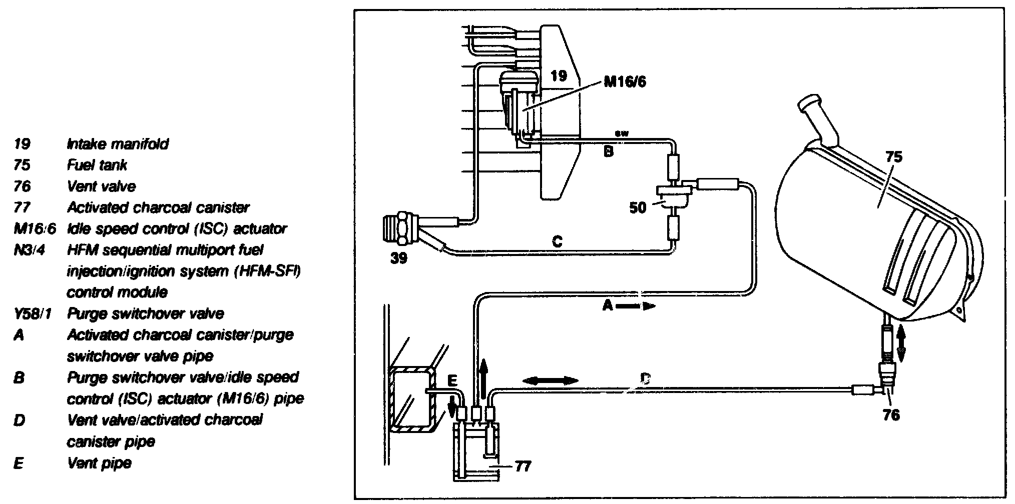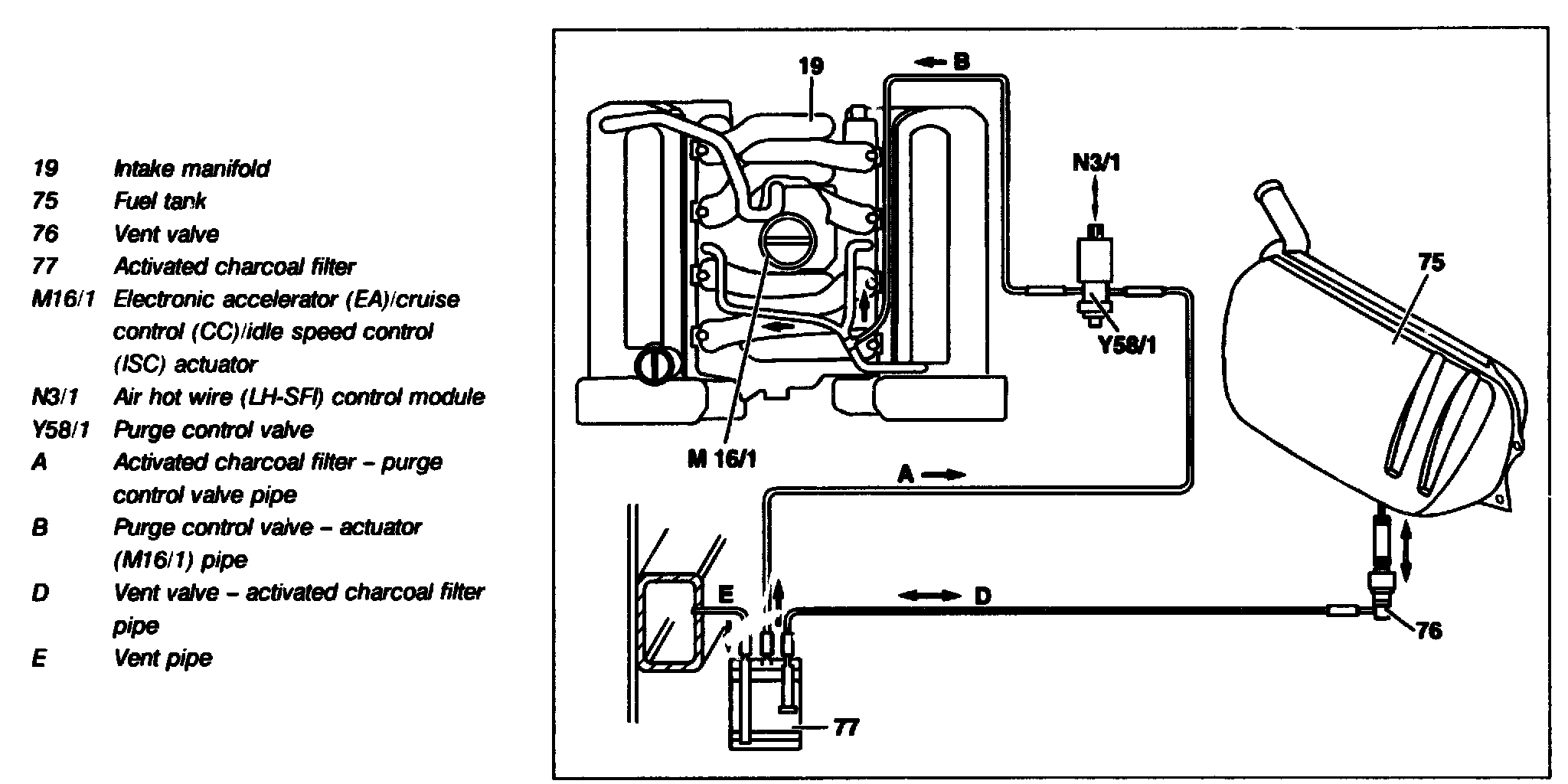 Connection diagram of LH-SFI evaporative emission control system model 124 with engine 119.97