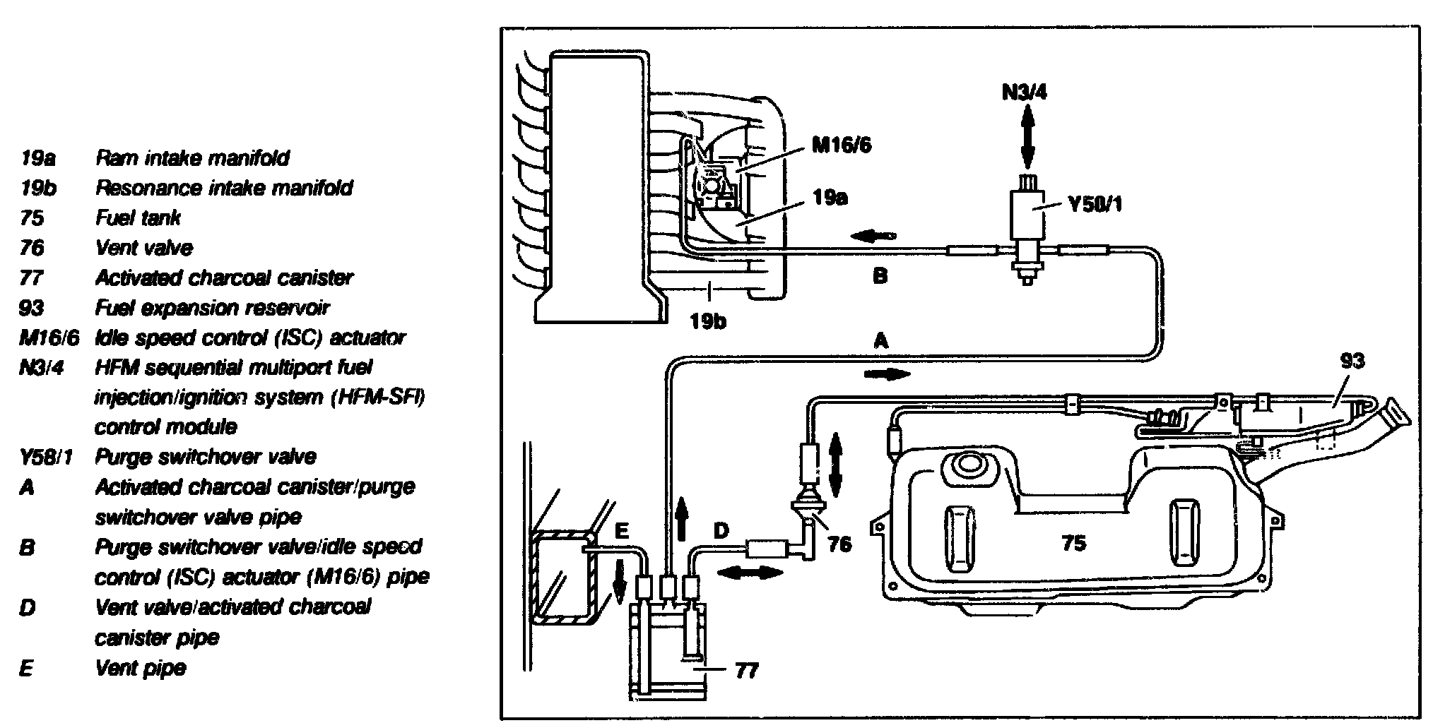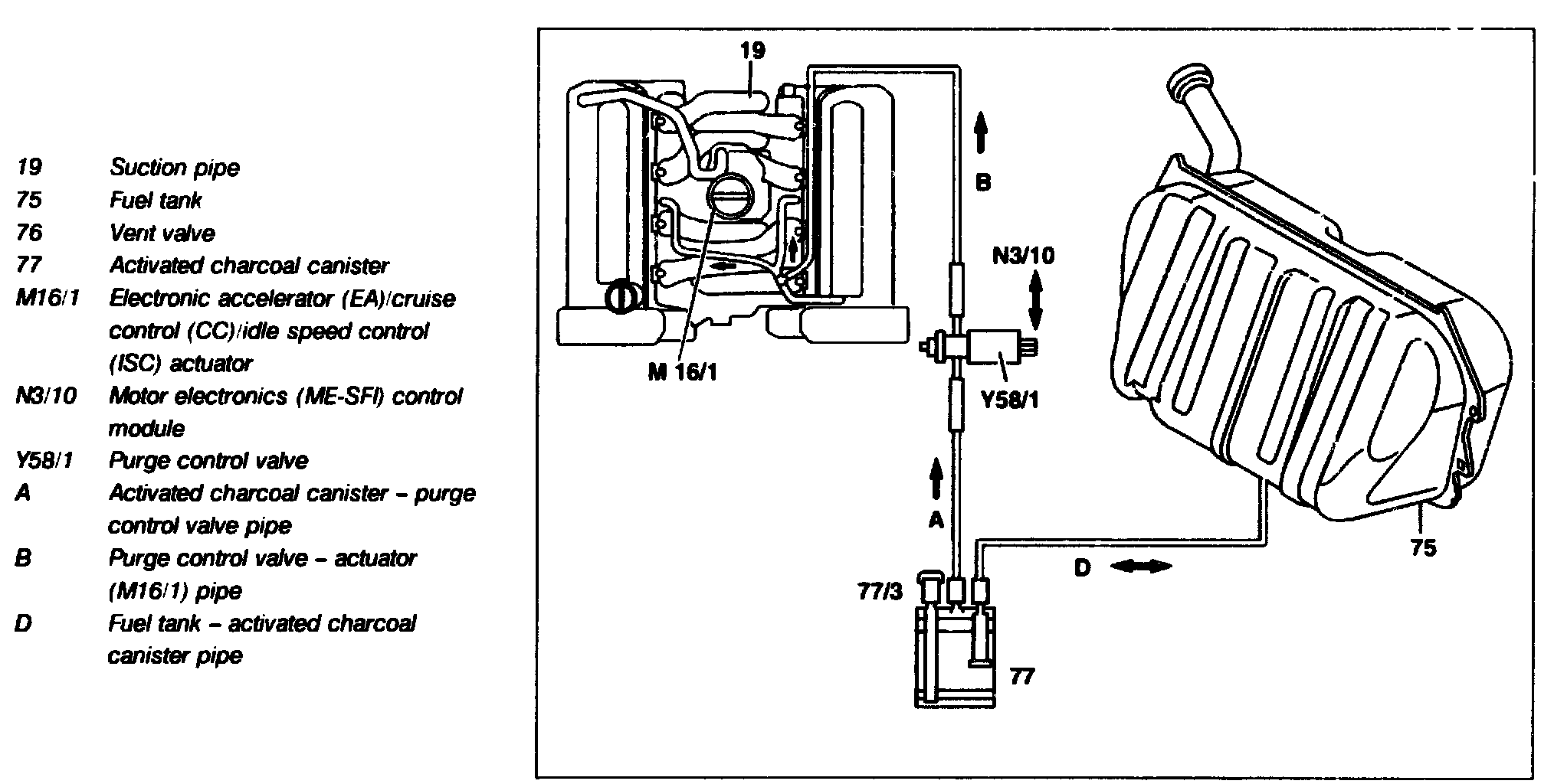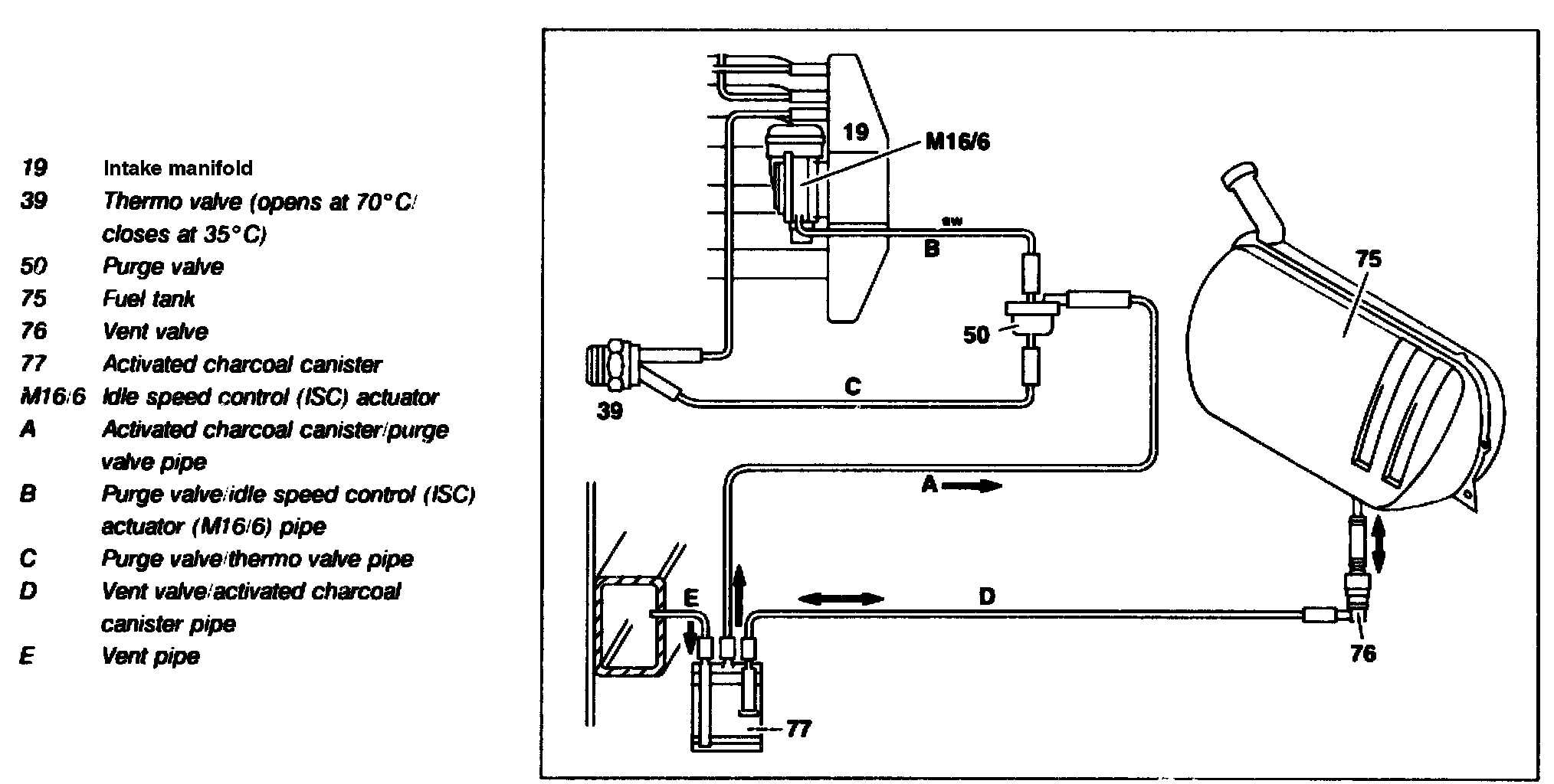 Connection diagram of LH-SFI evaporative emission control system model 124 with engine 119.97