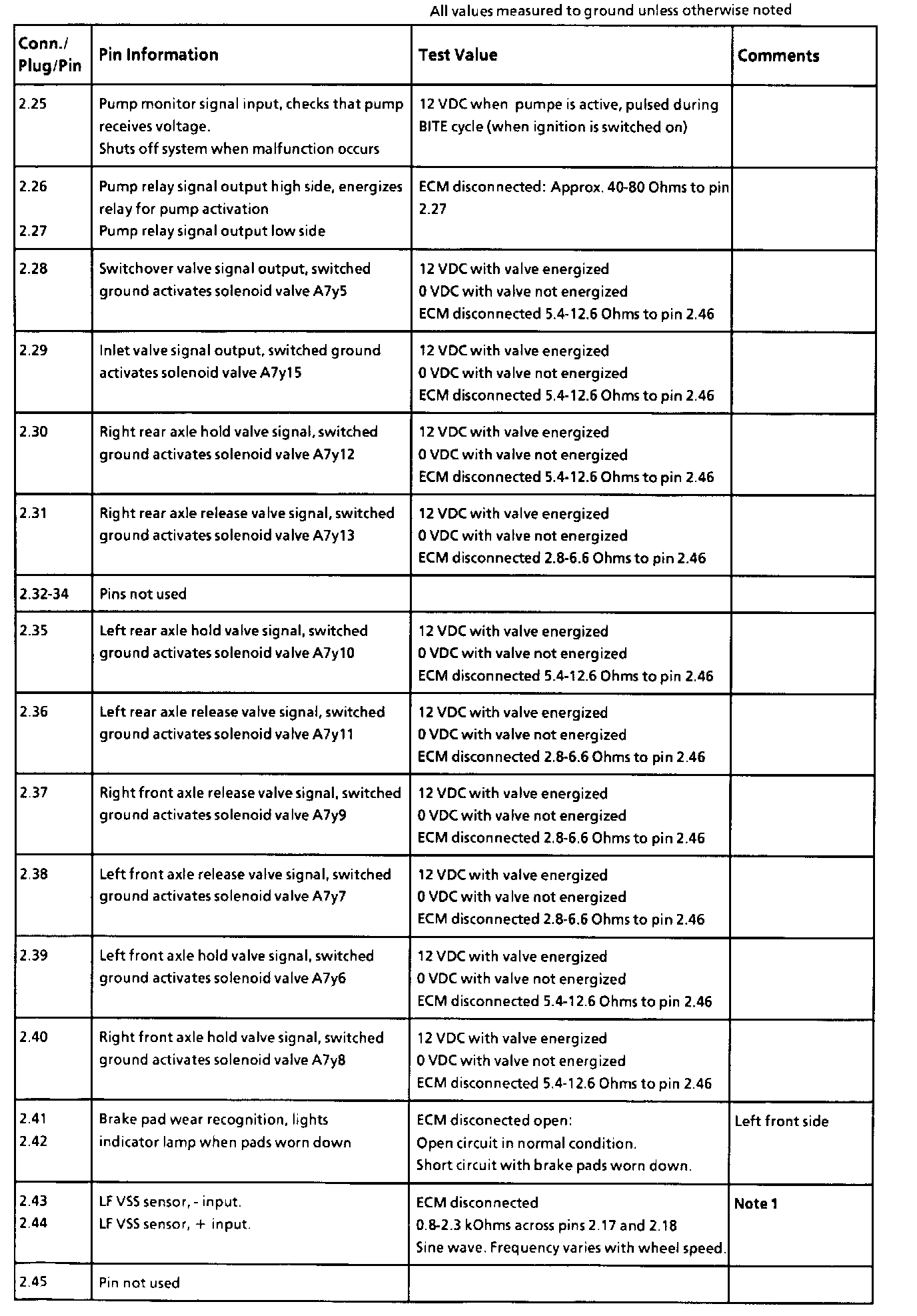 Connector 2 - Pin 25 Through 2 - Pin 45: