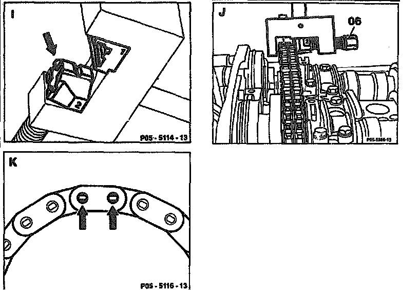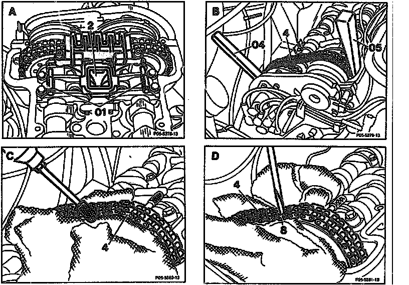 - Fix new timing chain to camshaft sprockets with wedges (04) and (05).