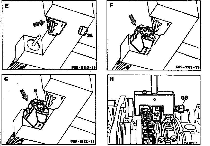 - Insert jaws for duplex roller chain with number 1 into fitting tool and screw on with screw (28) (Fig. E).