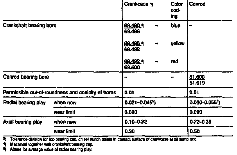 Bearing Bore, Conrod Bearing Bore An Bearing Play In mm