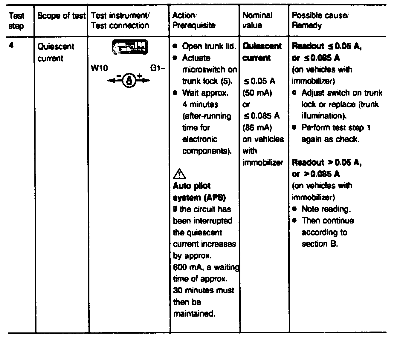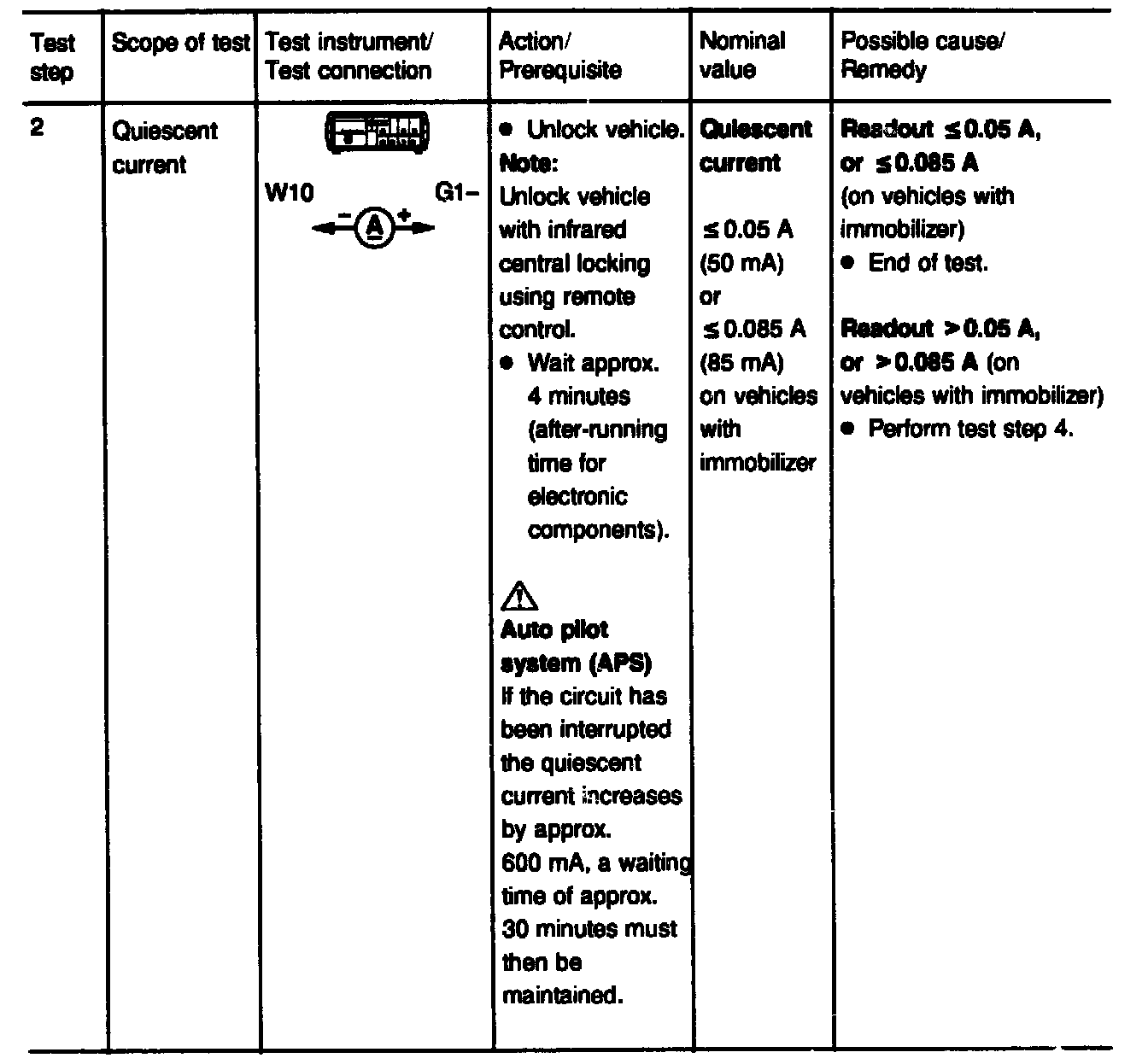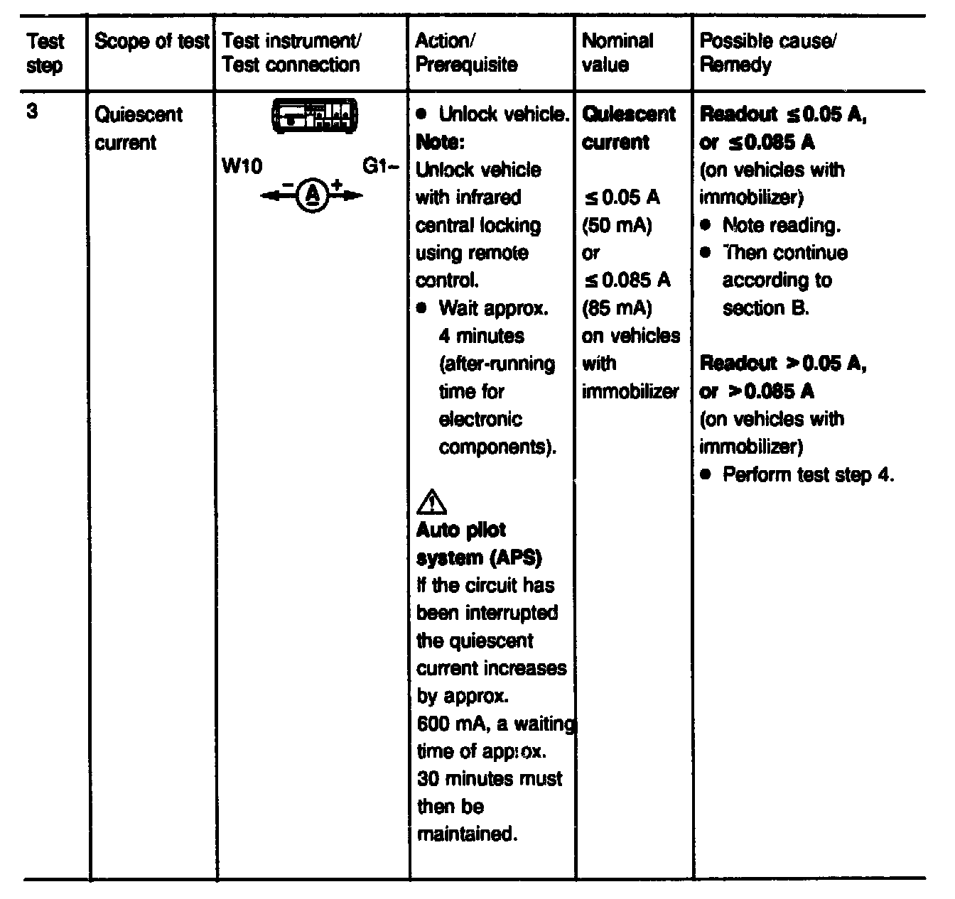 NOTE: On vehicles with auto pilot system the quiescent current increases to approx. 600 mA for approx. 30 minutes when the circuit has been interrupted!