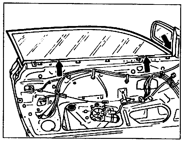 close until front of window moves into window guide rail on mirror triangle.