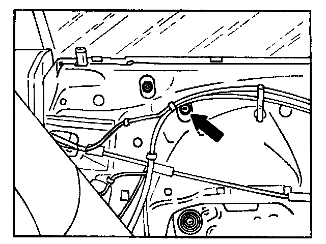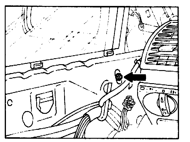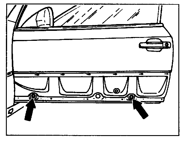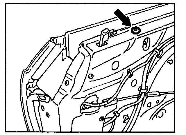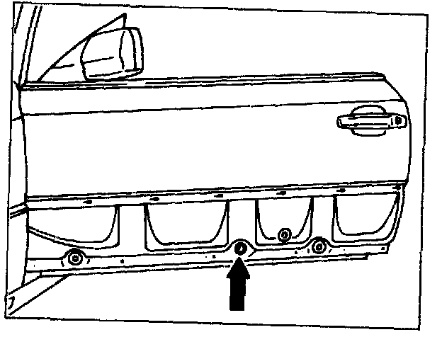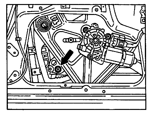 on top mounting screw for rear guide rail (oblong hole in inner door panel).