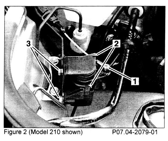 Model 208 and 210: Forward of brake master cylinder (see Figure 2).