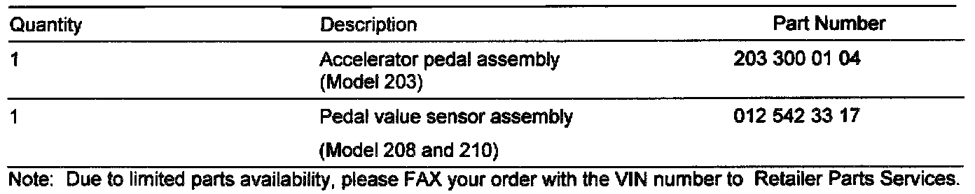 The affected accelerator pedal assemblies (for model 203) are identified via a five digit code: