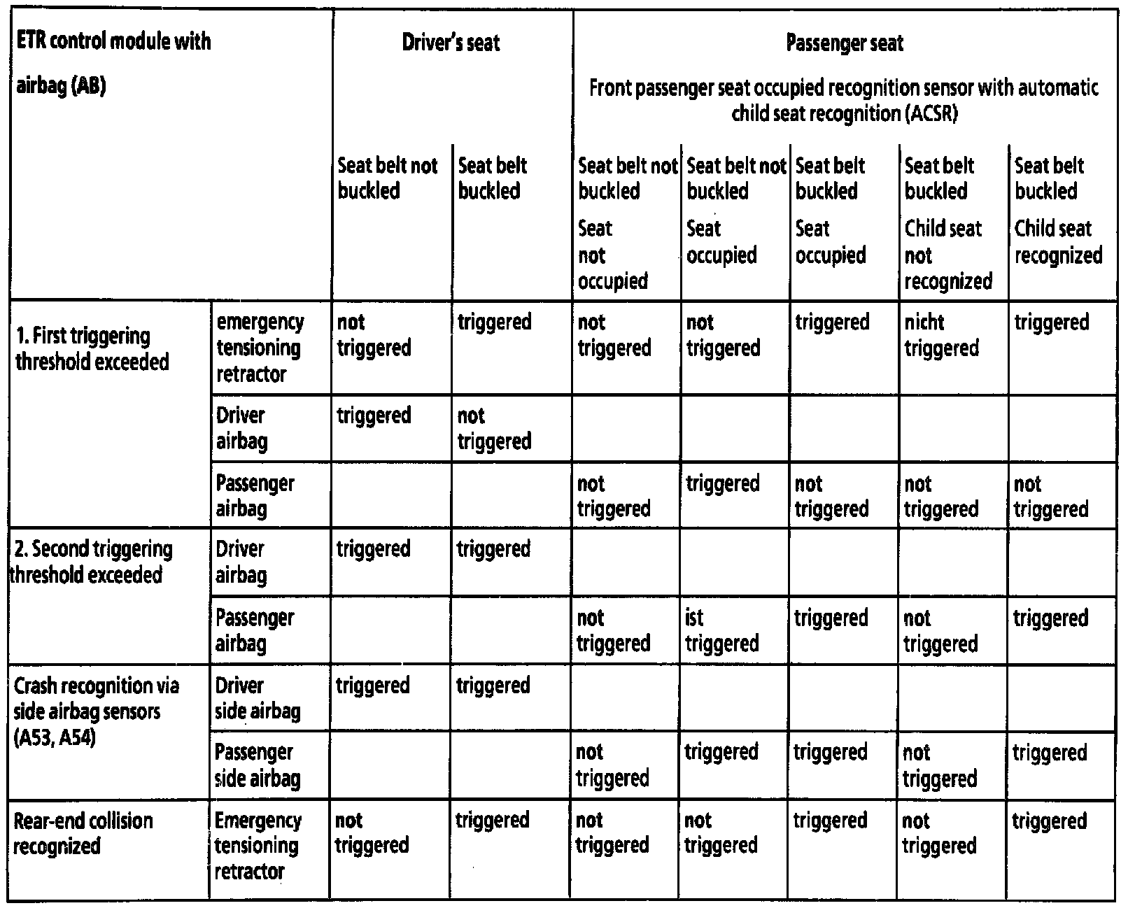 Front passenger seat occupied recognition sensor with automatic child seat recognition occupied as follows: