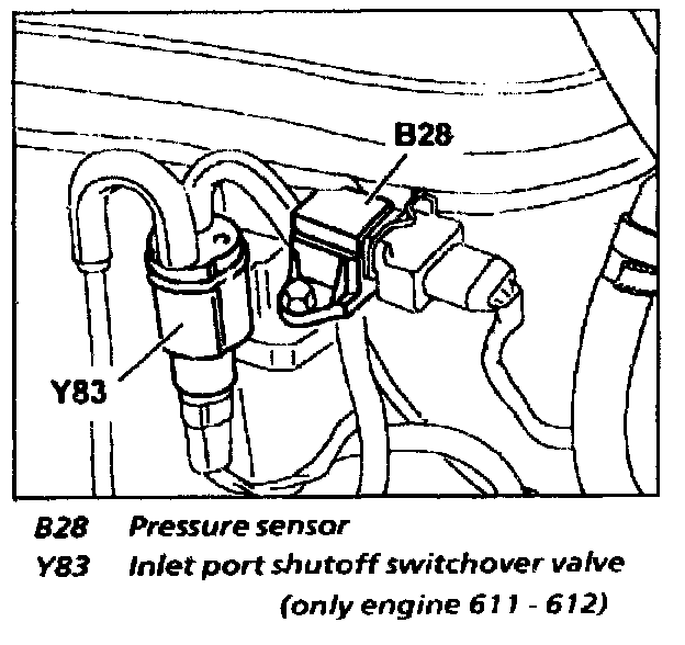 The pressure in the intake manifold/charge air distribution pipe alters the shape of the diaphragm and the piezo resistors alter their resistance. This influences the output voltage which in turn is used by the engine control module as information regarding the pressure in the intake manifold/charge air distribution pipe. The intake manifold/charge air distribution pipe pressure is required for the following funtions:
