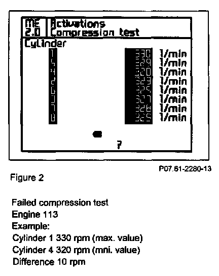 If the engine speed difference is greater than the set value, perform a compression/cylinder leakage test to determine the affected cylinder.