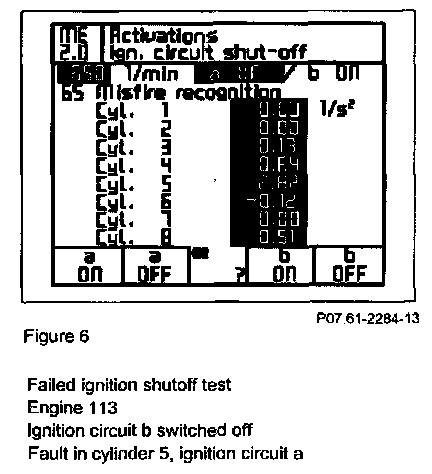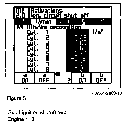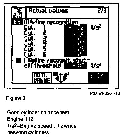 The cylinder balance test must be performed at idle. If the misfire recognition shutoff threshold i a exceeded, a fault will be stored and at the same time the fault count will increases. After repairs, clear the diagnostic memory.