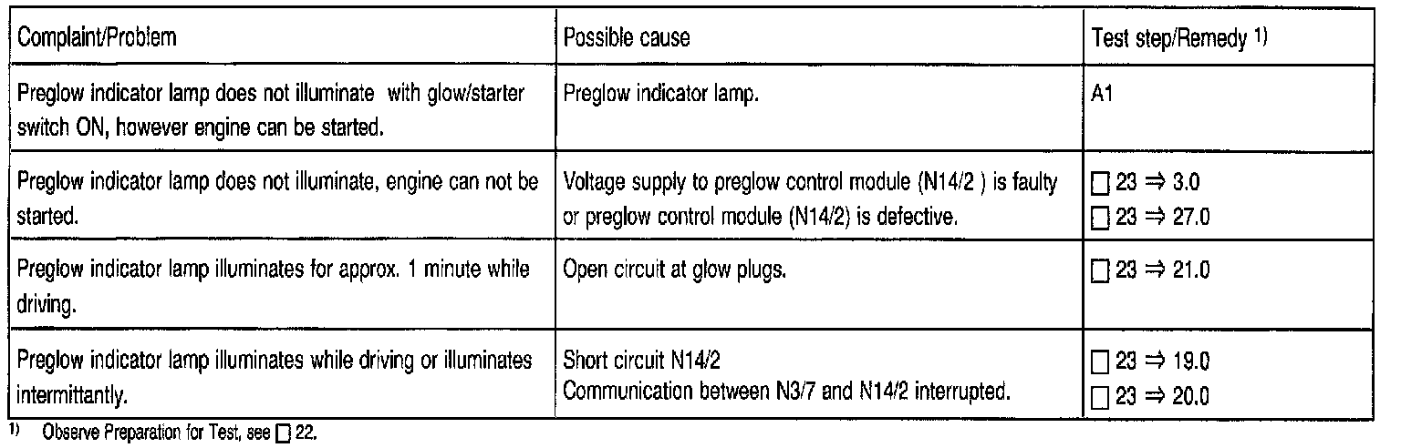 A malfunction of a glow plug is not indicated by the preglow indicator lamp.