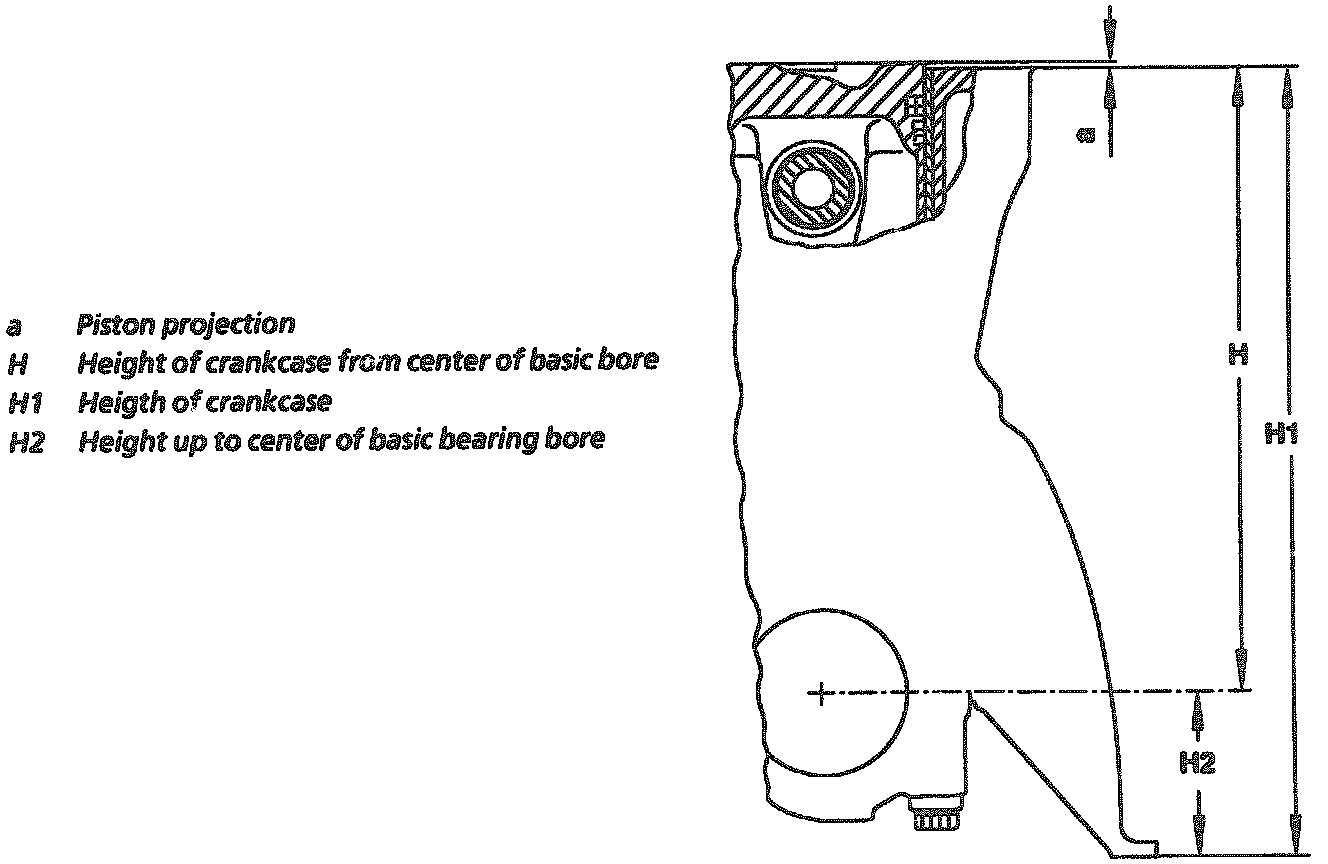 - Height of crankcase from center of basic bearing bore (H)