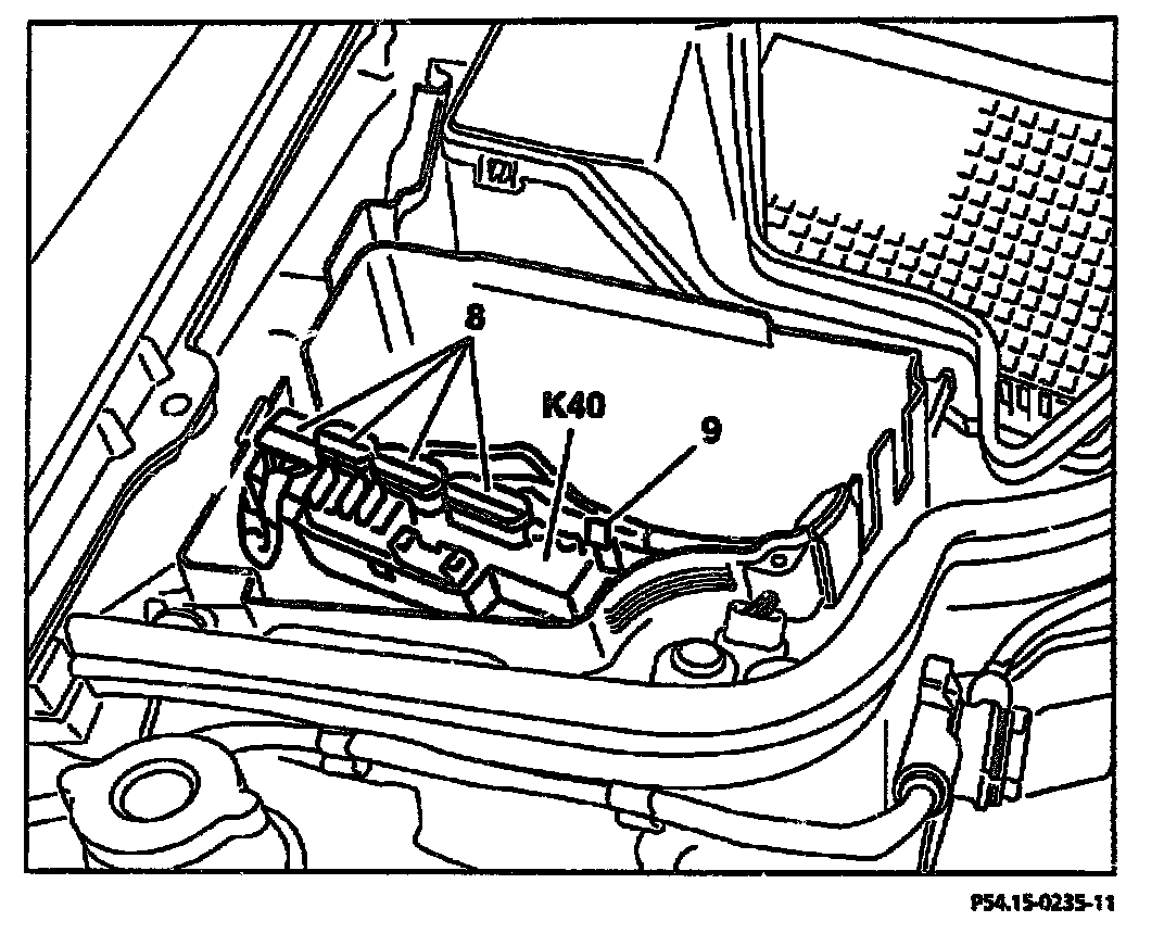 2 Press clamping spring (9) to side and remove relay module from control module box.