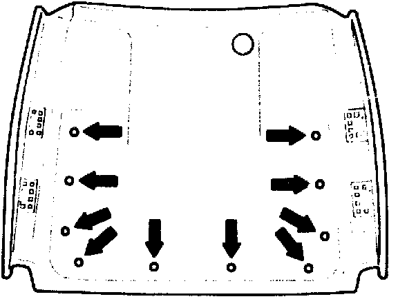 NOTE: When replacing the pompadour pocket (2) shorten the plastic weld bolts to 4 mm overall length
