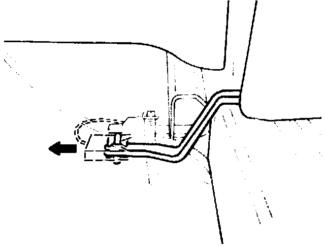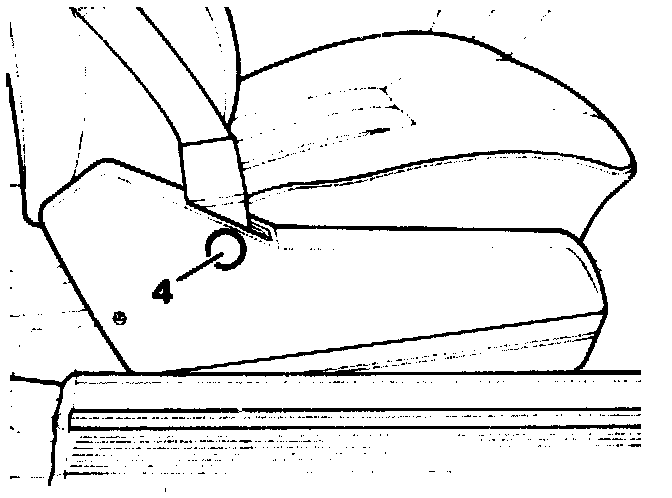 3 Detach control cable at rear of seat frame by removing cap to the rear. Pivot hook-in tab 90° and pull off.