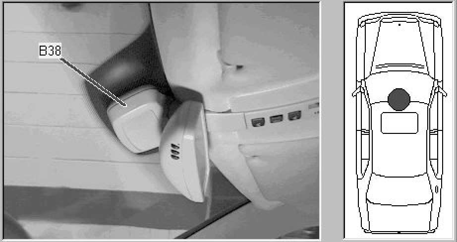 Passenger compartment, top center of windshield, integrated into speaker/mirror sensor assy.