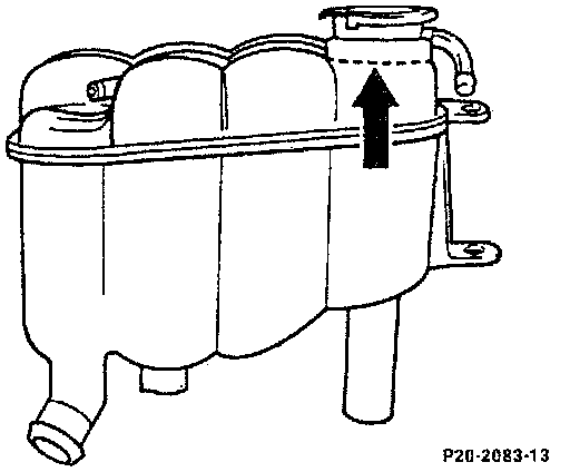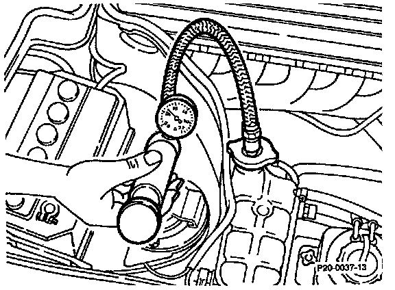 3. Pressurize cooling system to approx. 1.4 bar (20 psi) with the tester 124 589 15 21 00, or equivalent.