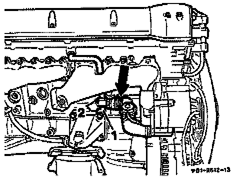16. Detach hose at non-return valve of secondary air injection pipe (arrow), unbolt bracket (1).