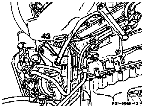 18. Detach pipe (43) of crankcase air admission at combination support (17).