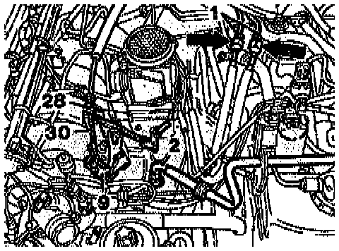 24. When engine cold, slacken cylinder head bolts in stages in the reverse order of the tightening diagram, beginning with bolt 14.