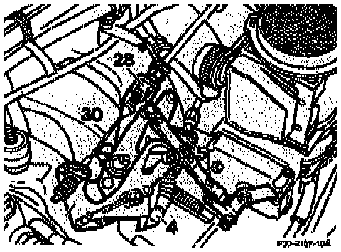 22. Detach control pressure cable (4), compress plastic clip (5) and guide plastic clip with linkage through the bracket.
