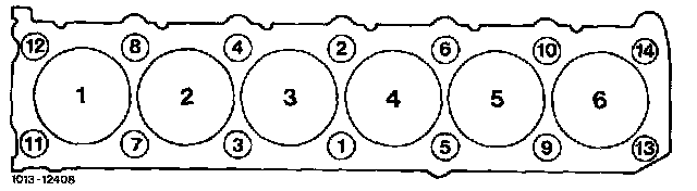33. Tighten cylinder head bolts in stages in the order of the tightening diagram beginning with bolt 1.