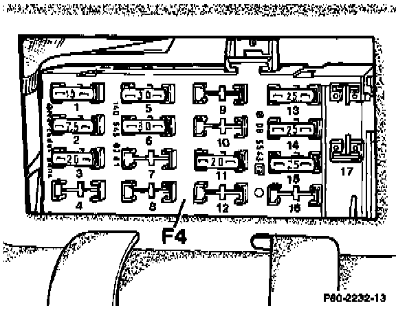 Rear Fuse Box F4 (17-fuse, in trunk):