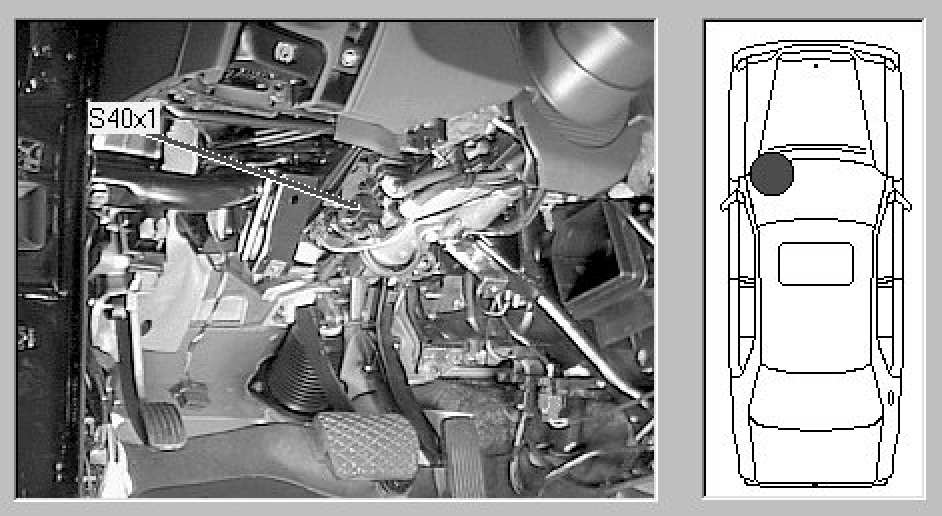 Passenger compartment, in Driver's footwell, below and to left of steering column.