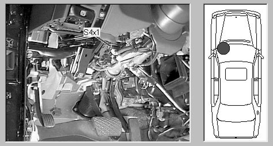 Passenger compartment, in Driver's footwell, below and to left of steering column.