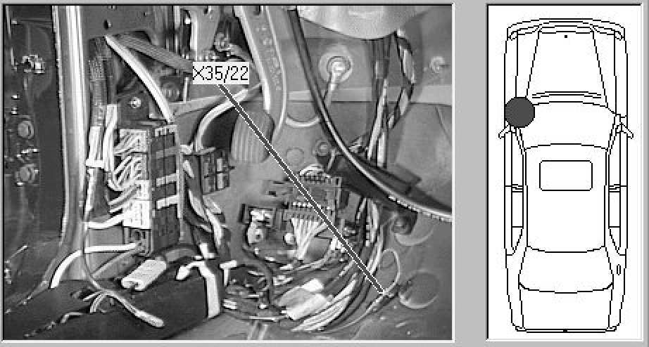 Passenger compartment, lower left of Driver's footwell.