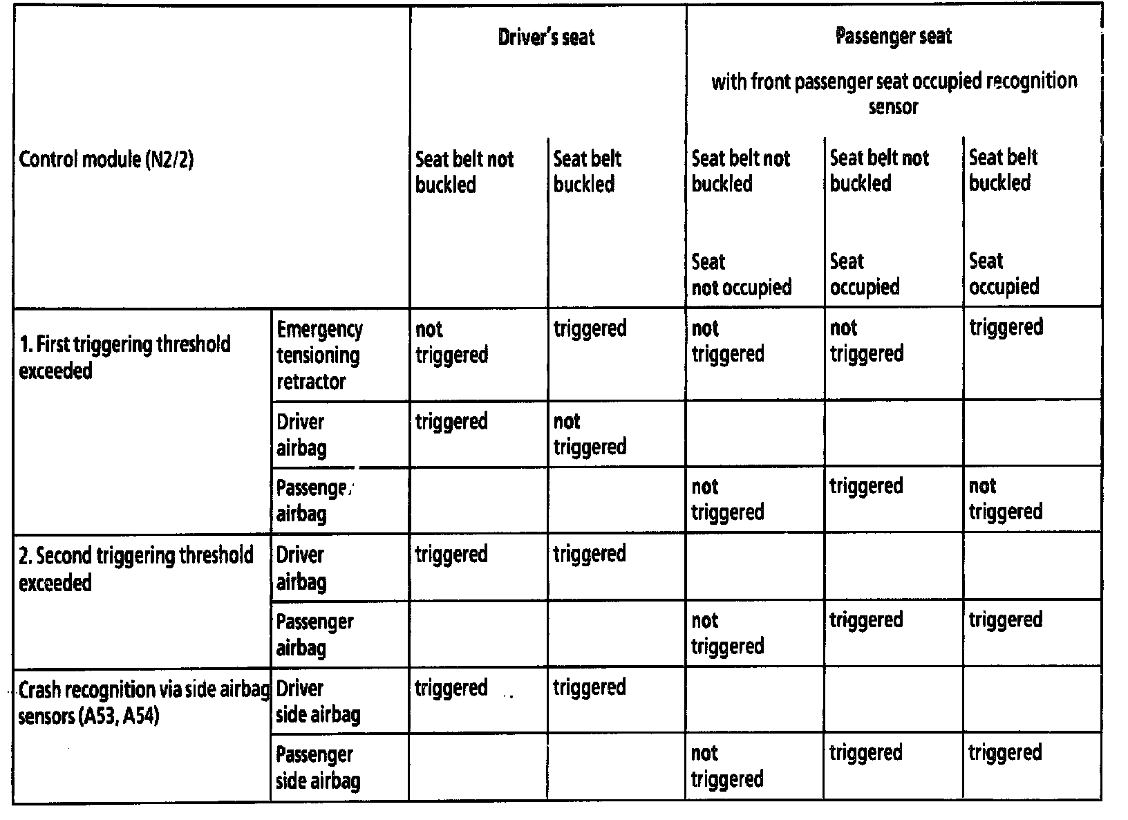Front passenger seat occupied recognition sensor with automatic child seat recognition occupied as follows: