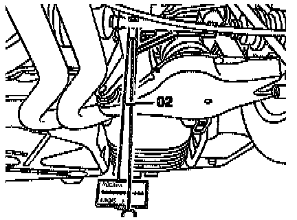 4. Using Pulling device (040) tool No. 201 589 11 31 00 and angled retainer (040f) tool No. 140 589 37 63 00, or equivalents, pull down the rear end of the vehicle to the specified control point (simulate loading condition)