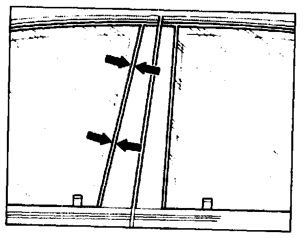 7 Check parallel position of window at rear vertical window guide channel.
