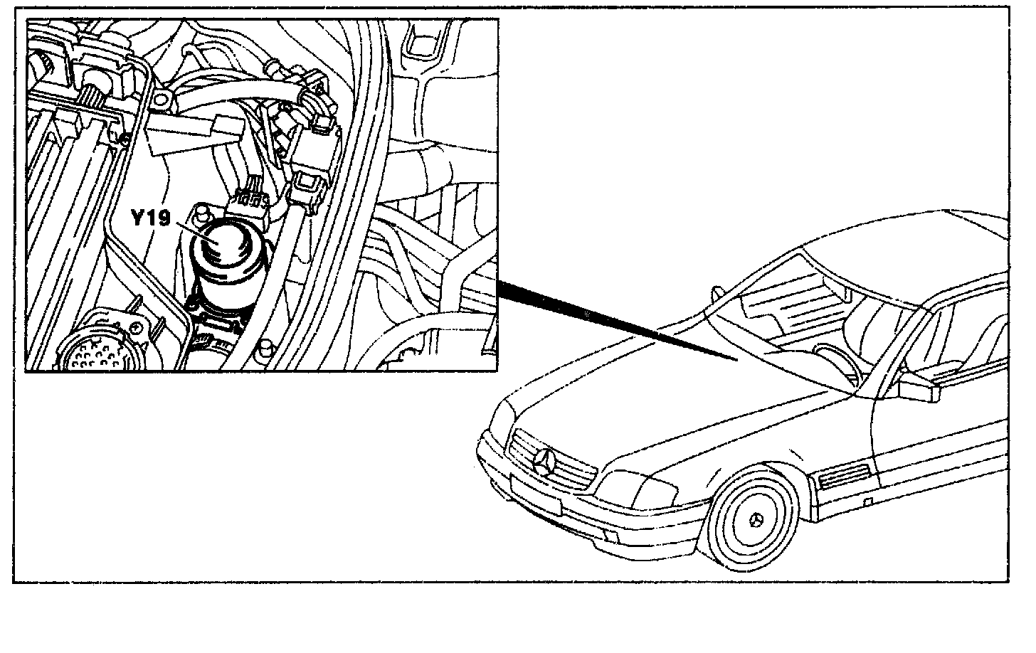 The monovalve (Y19) is located at the right rear in the engine compartment.