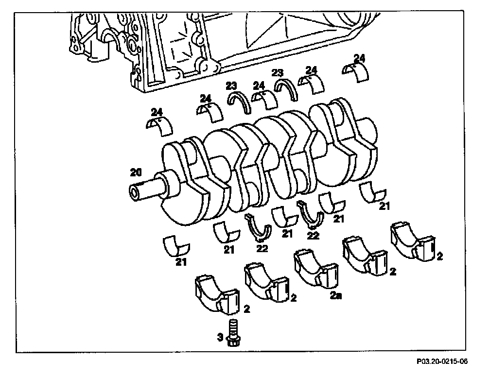 5 Unbolt crankshaft bearing caps (2, 2a)