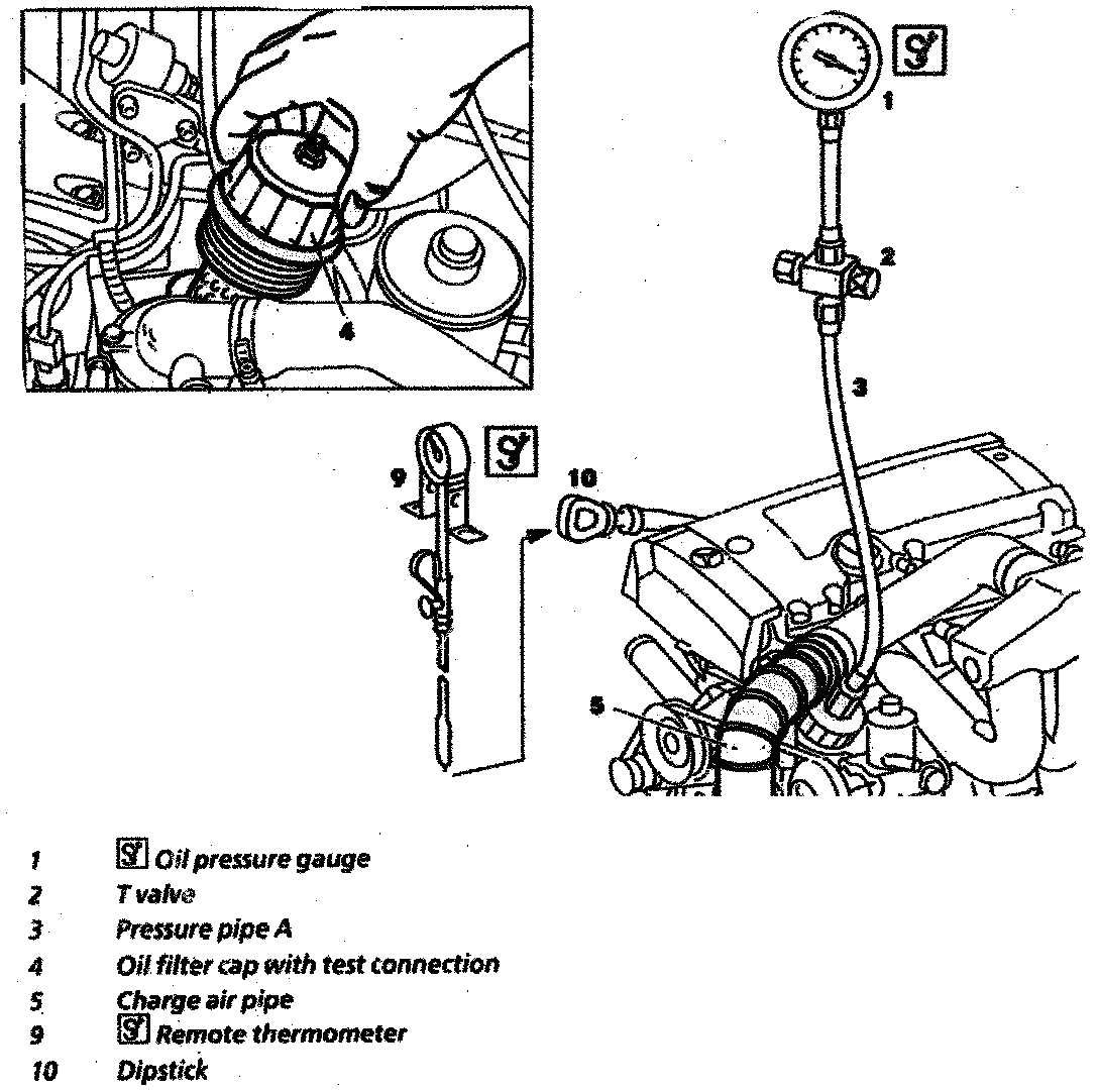 - When the accelerator is depressed, the oil pressure must immediately rise and reach at least 3 bar at an engine speed of 3000 rpm.