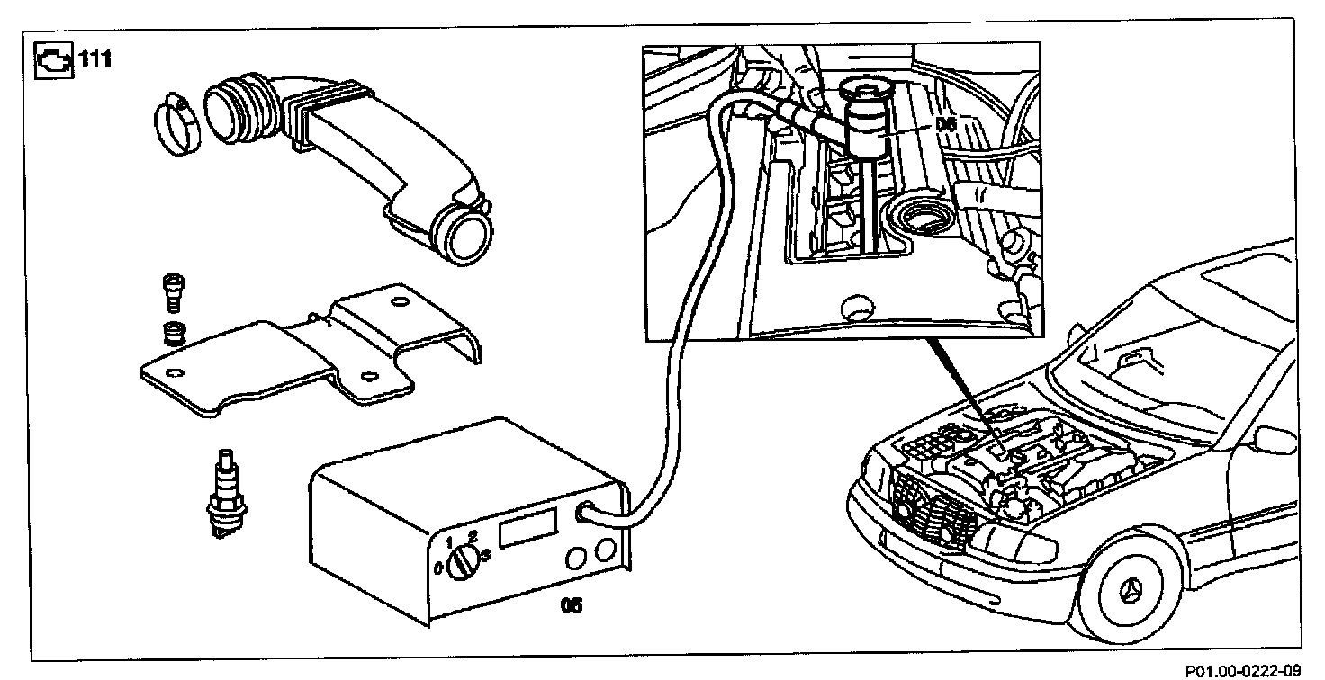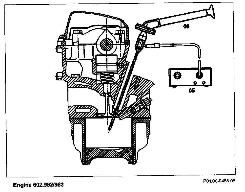 4 Connect cylinder inspection light (05) and insert test probe (06) of the inspection light