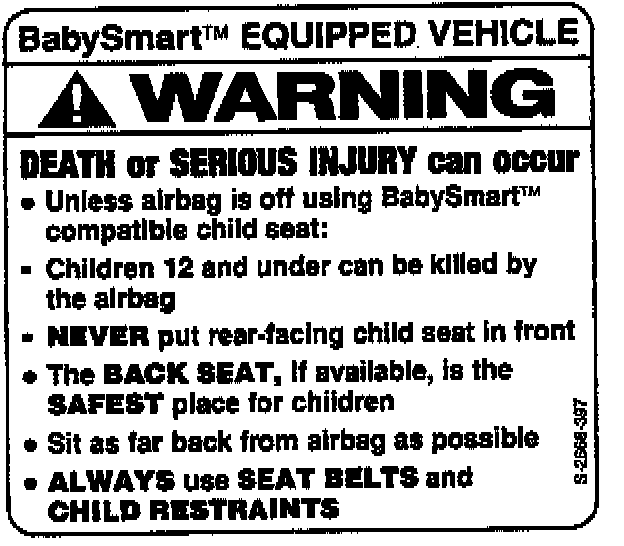 According to Federal Government statistics released October 3, 1996, unless they are deactivated, inflating airbags pose a risk of death or serious injury to children under 13 years old. In light of this risk all model 170 (SLK) vehicles have been equipped with the BabySmart(TM) system. A BabySmart(TM) compatible child seat, when properly installed in the model 170 (SLK) front passenger seat, disables the passenger front airbag.