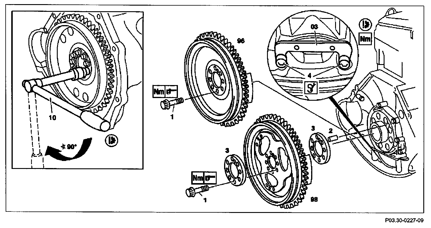NOTE: If the flywheel is replaced, carry out re-initializing in ME control module with Star Diagnosis in menu point "Control module adaptation".