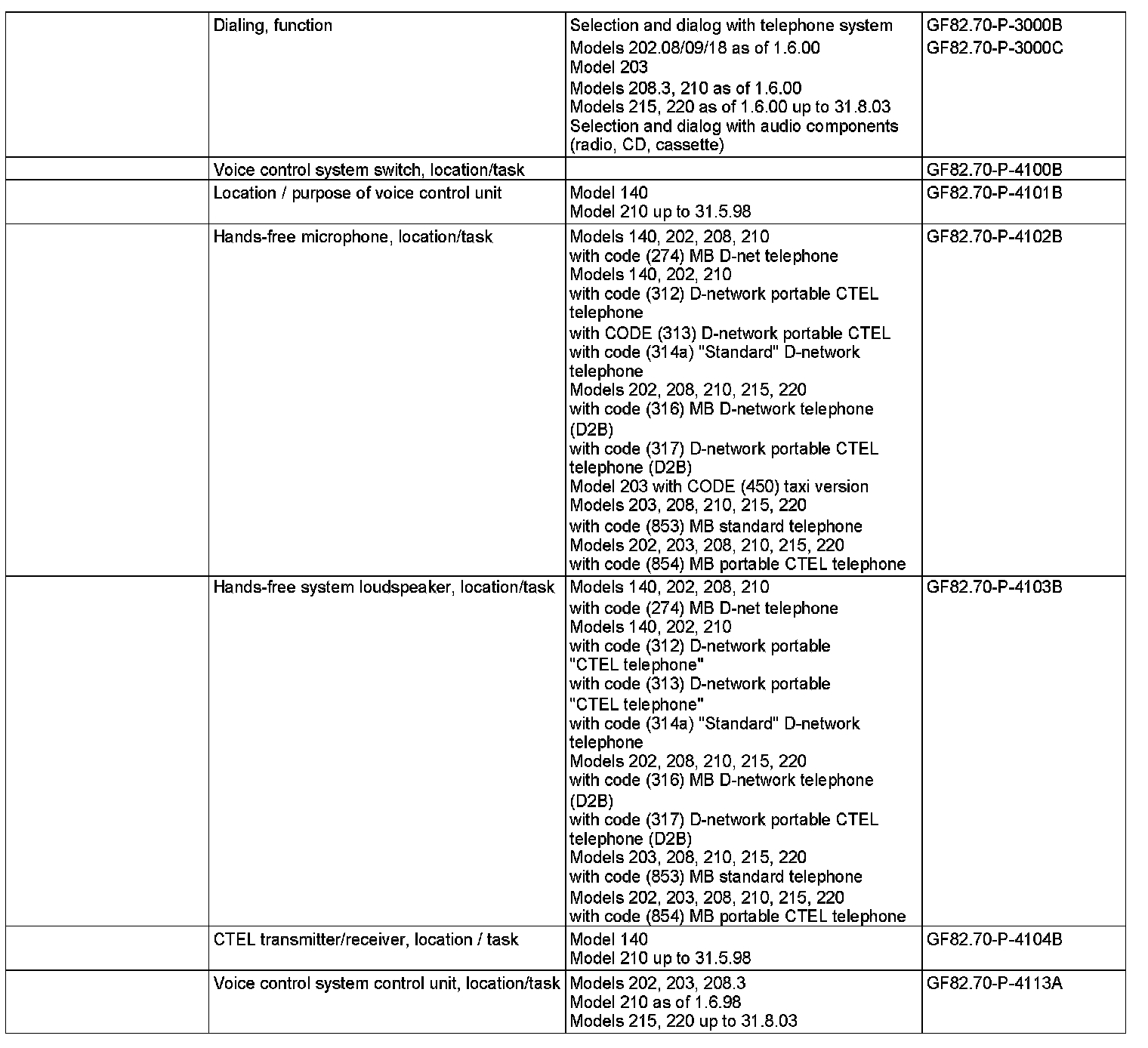 MODELS 140, 202,203 up to 23.4.04,208.3, 210,215, 220 up to 31.8.03