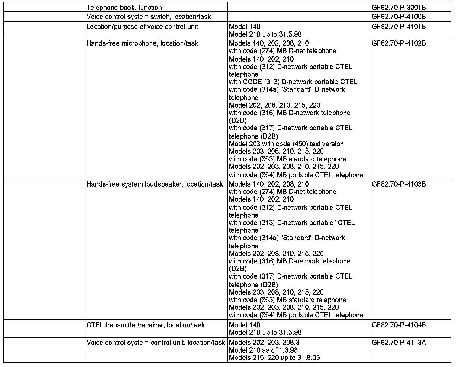 MODELS 140, 202,203 up to 23.4.04,208.3,210,215,220 up to 31.8.03